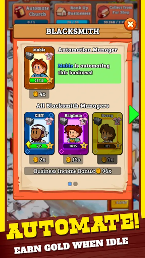 Tap your way to idle tycoon status one town at a time, hiring interesting characters from various towns, and sit back and watch as your gold piles up! Can you reach Providence Valley?