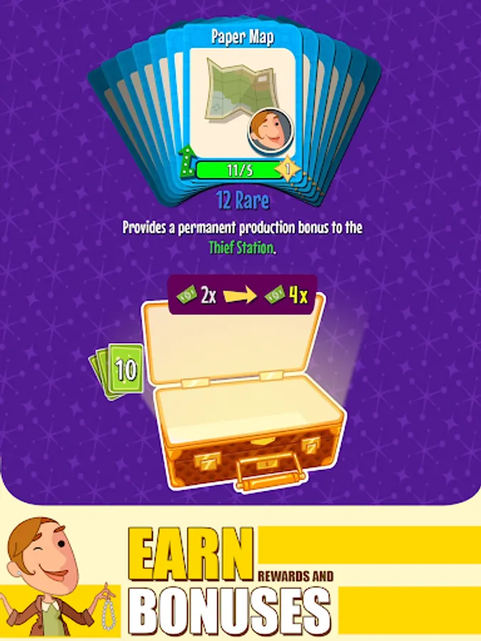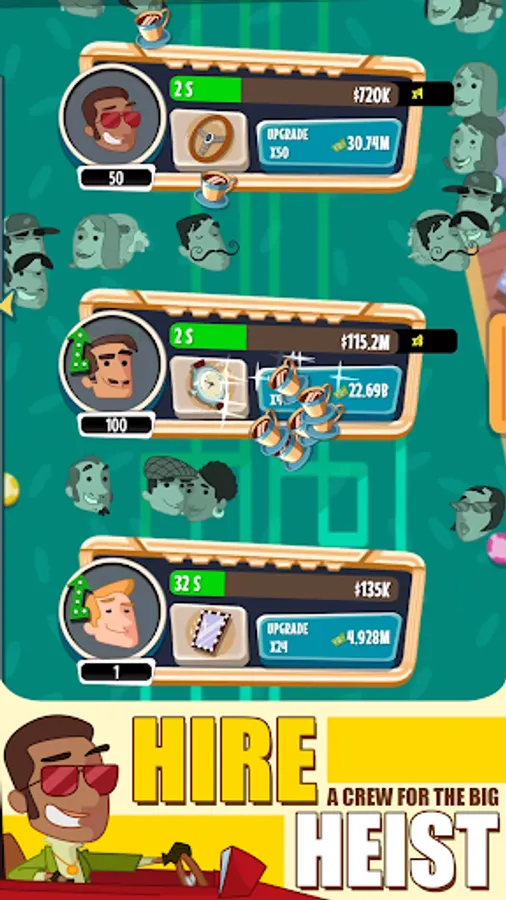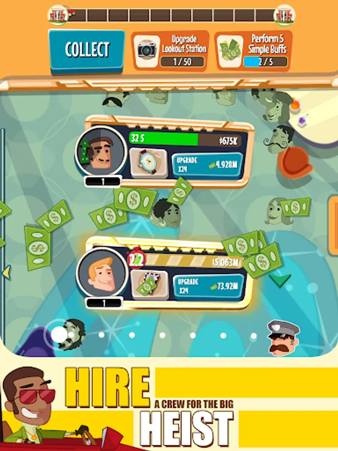 Gather your crew for the ultimate heist. Upgrade your cast of characters to make them better, faster, stronger!
