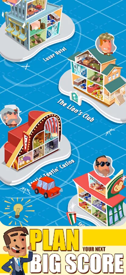 Build a team of experts, each with their own skills and abilities fit for a variety of jobs. Infiltrate casinos, banks, and other fantastic locations. Keep an eye out for the Big Score!