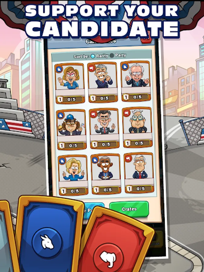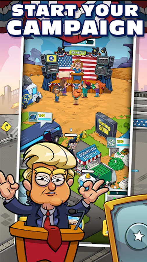 Choose to play as a Liberal or Conservative in this satirical idle game of politics and power. Rise through the political ranks, gain cash from the biggest fundraisers in the country, and watch your lobbies earn billions to help you become the most powerful person in the free world. Can you lead your party to profits and power?