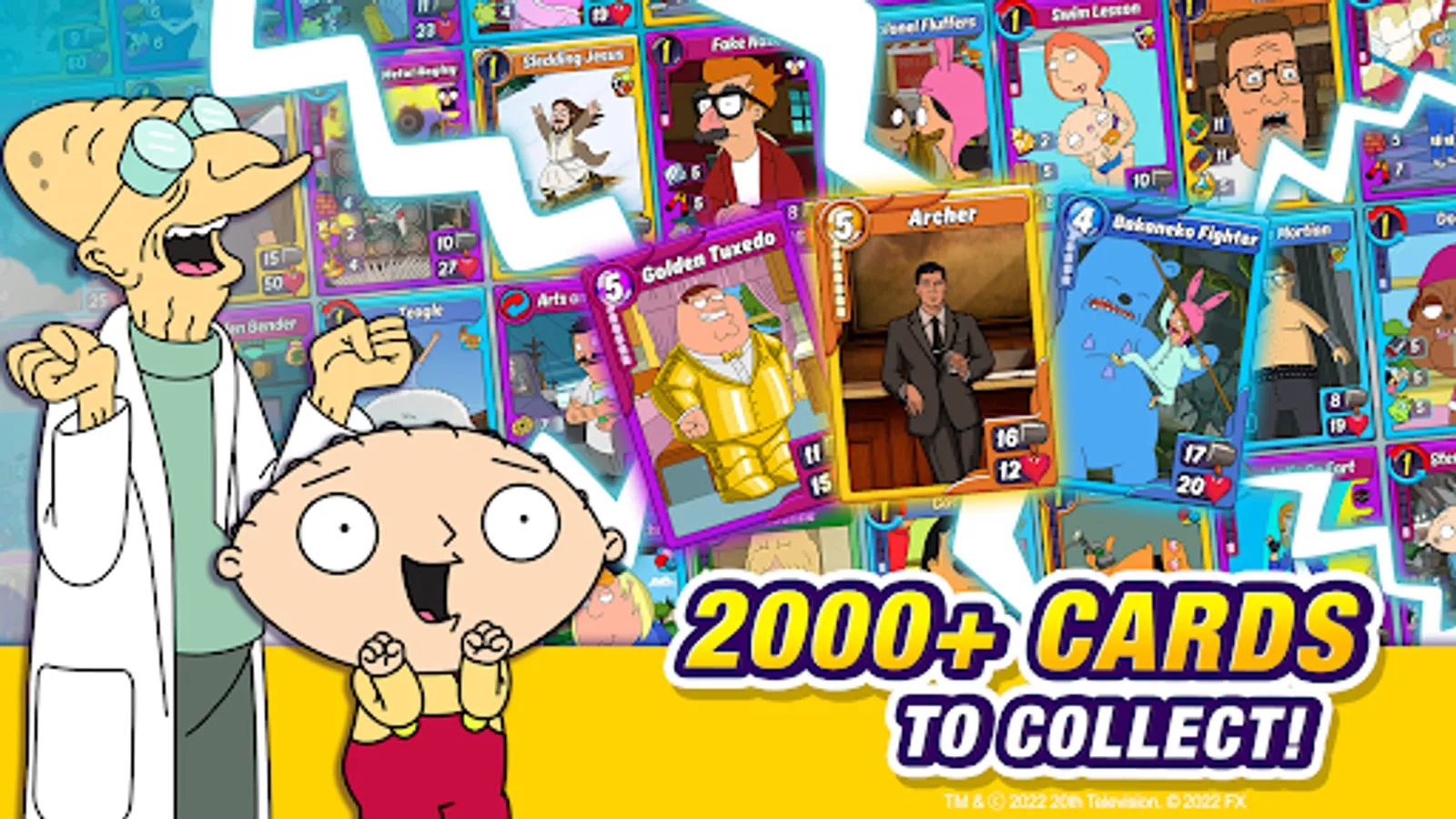 STEWIE, BENDER, LANA, PAM, TINA BELCHER, HANK HILL & ROGER THE ALIEN are waiting for you in this epic CCG! Come battle your way to the top in PVP duels!
