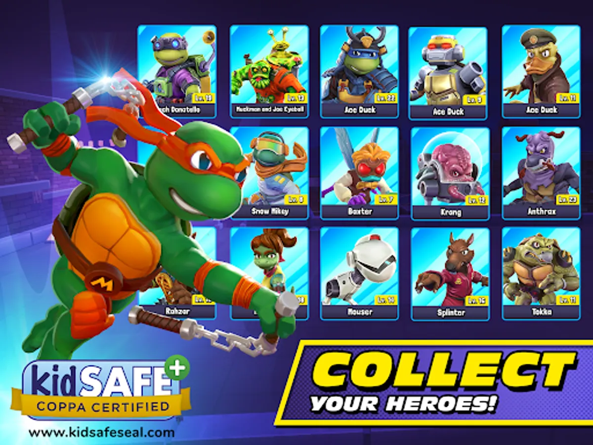 Fight legends of the TMNT universe including Krang, Bebop & Rocksteady, and the deadly Shredder. Join PVP clashes to gain bragging rights and prizes!
