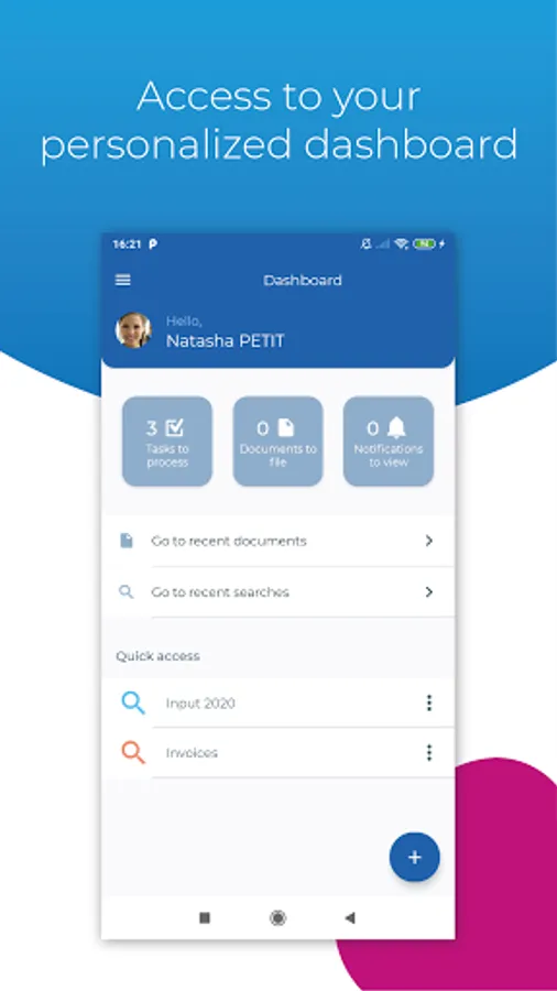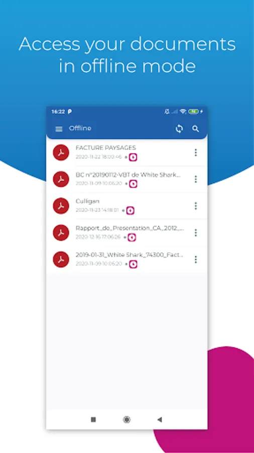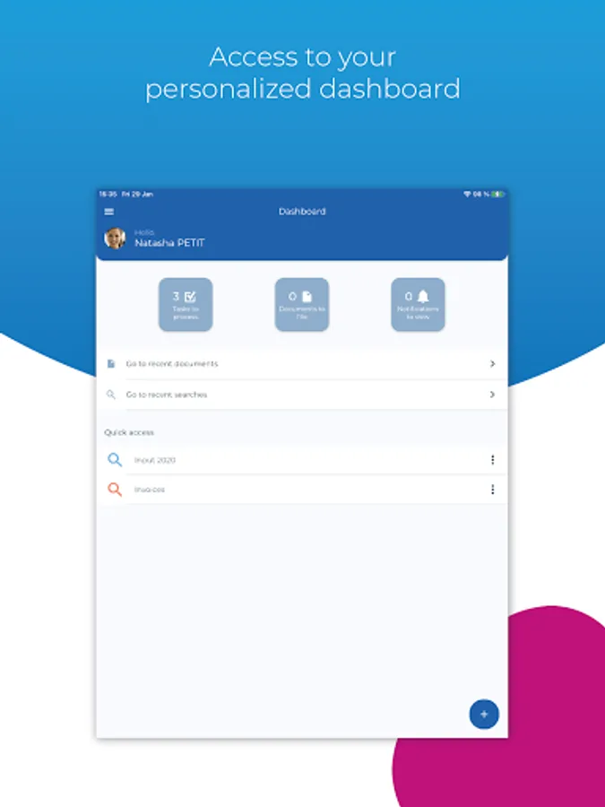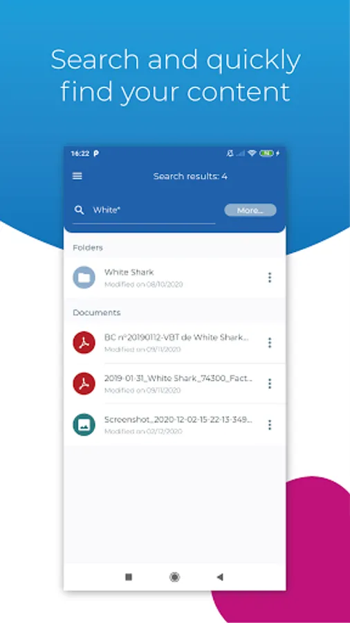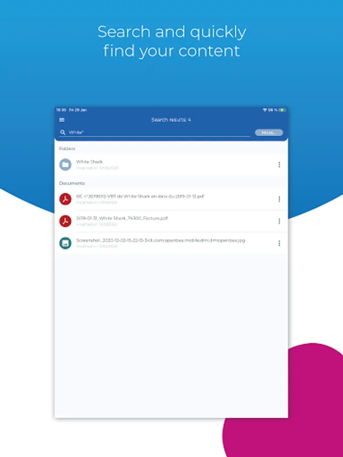 • Find your documents in a matter of seconds thanks to a powerful and intuitive search engine