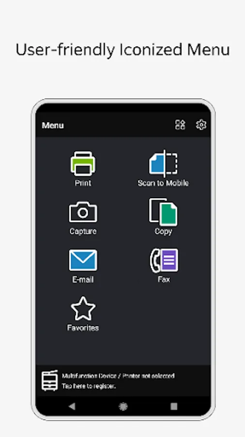 Mobile Print for C3120i/C3100i is an application that allows you to easily connect to bizhub C3120i/C3100i from your Android device using Wi-Fi. It enables you to print documents and images as well as import scanned data.