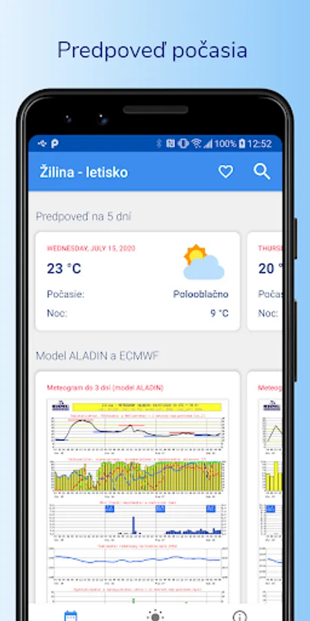 Slovak weather forecast for your Android phone with data from SHMÚ (Slovak Hydrometeorological Institute).