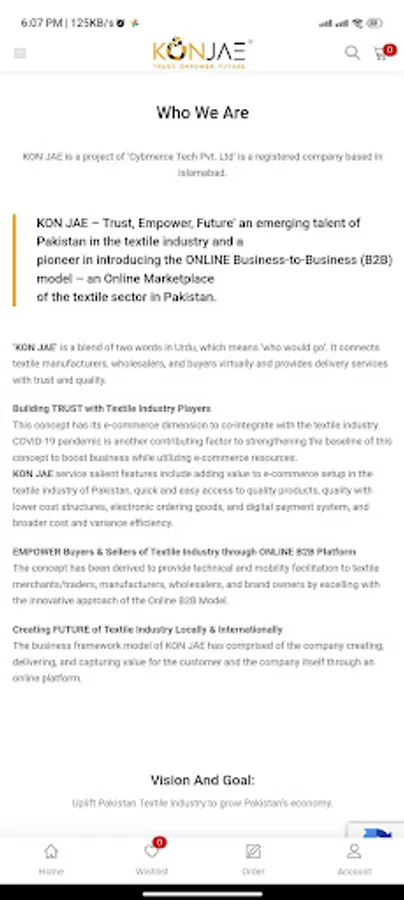 KON JAE – Trust, Empower, Future’ an emerging talent of Pakistan in the textile industry and pioneer in introducing the ONLINE Business-to-Business (B2B) model – an Online Marketplace of the textile sector in Pakistan.
