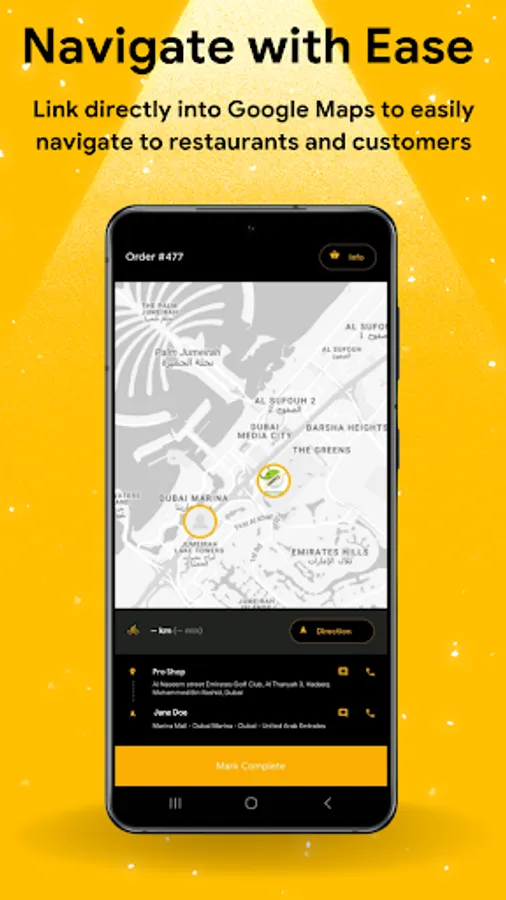 - The app works alongside Google Maps, allowing easy navigation to both the restaurants and customer locations.