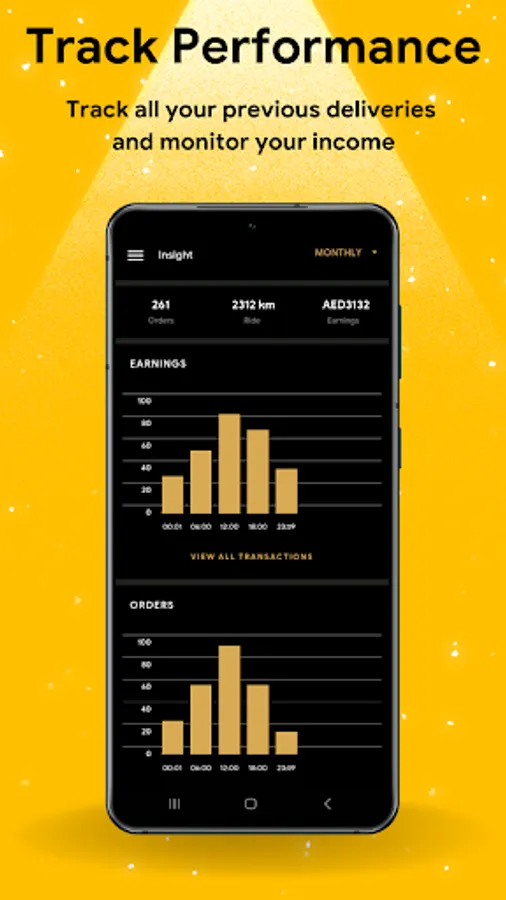 - Drivers can quickly and easily monitor their performance based on income and orders fulfilled on a daily, weekly, or monthly basis.