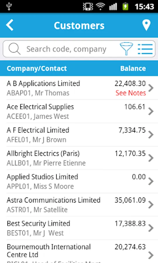 Find yourself on site with a customer and have an account query; no problem simply bring up their account information and view/e-mail a statement or copy invoice; right from your device. With support for full wild-card searching throughout, you will be able to locate and solve your query in a matter of seconds.