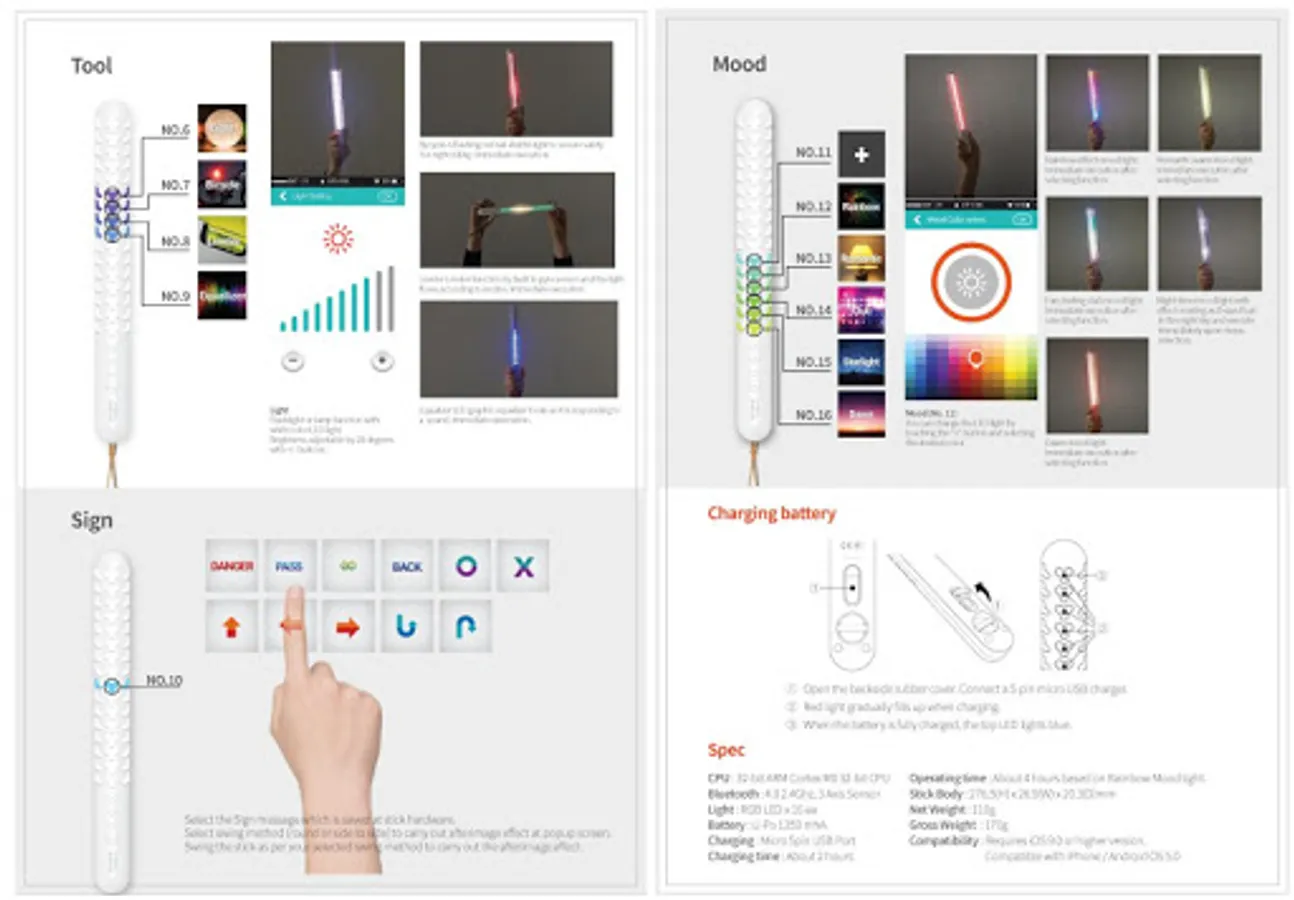 잔상효과 기능 이외에도 조명, 무드등, 현재시간, 알람, 타이머, 경광등, 이퀄라이저, 수평계 등 아웃도어 및 레저용 등 다양한 용도로 활용이 가능한 다기능 신개념 제품입니다.