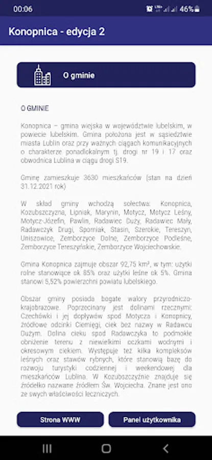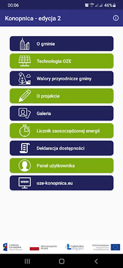 Ponadto, aplikacja prezentuje dane liczbowe dotyczące oszczędności energii, informacje dotyczące projektu i technologii OZE oraz dotyczące walorów przyrodniczych gminy jakie chroni projekt. W aplikacji dostępna jest galeria zdjęć z terenu Gminy Konopnica.