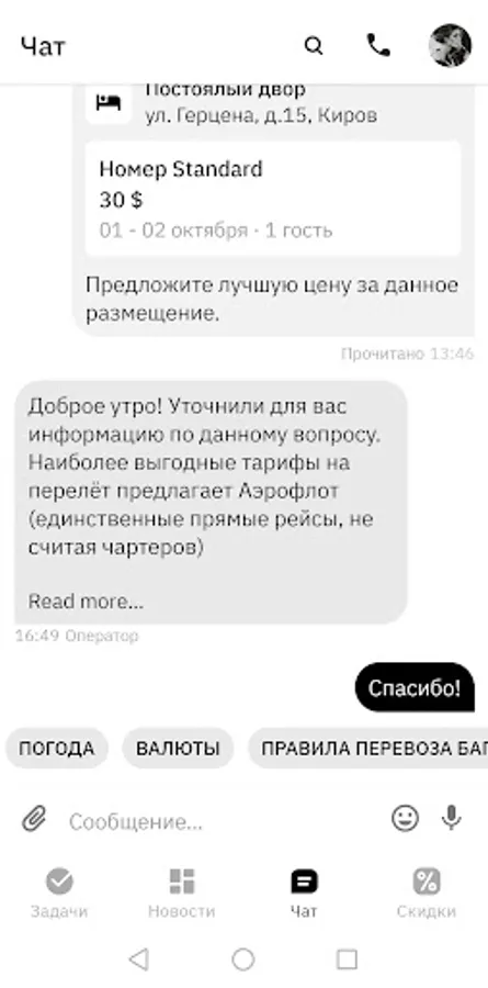 - A convenient instant messenger in which you can send text and audio messages, media files, locations and documents to the concierge.