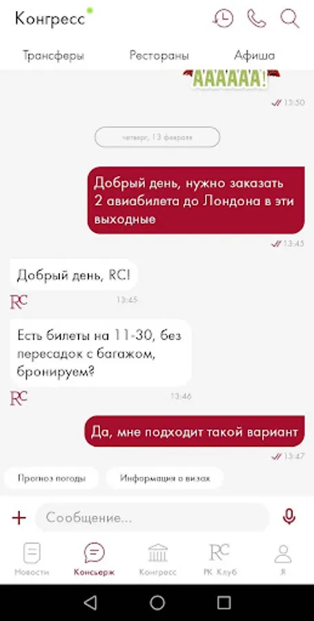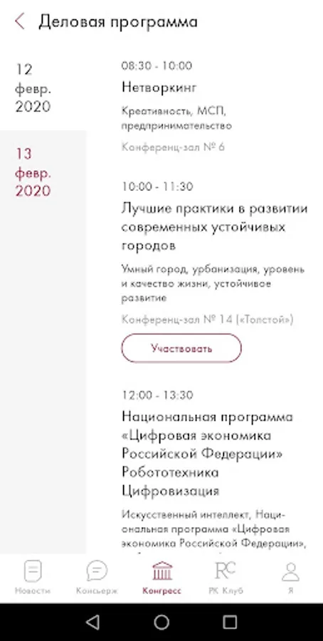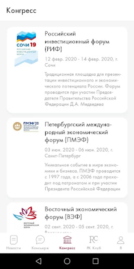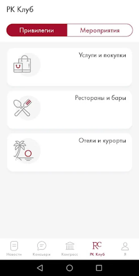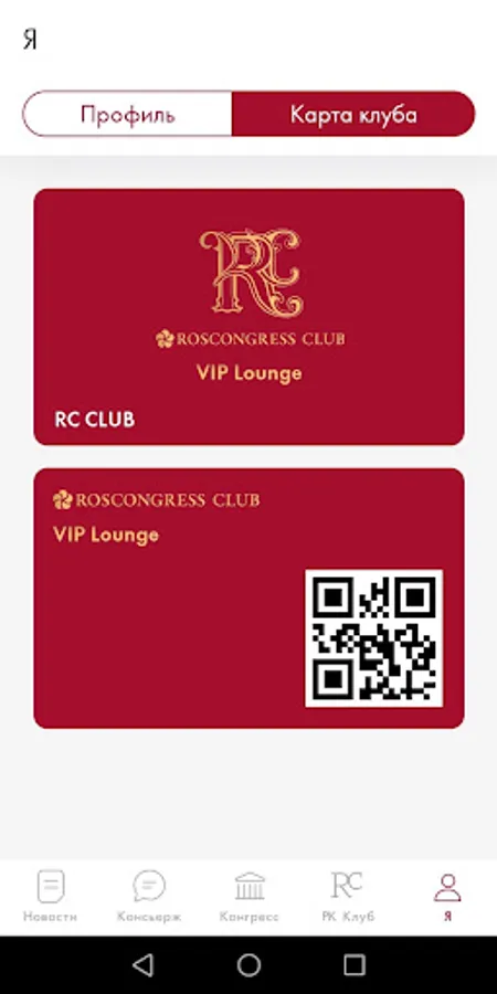A mobile application for members of the closed Roscongress Club, which provides access to concierge services in the field of business, lifestyle and travel services, as well as detailed information about the events of the Roscongress Foundation (RC Club).