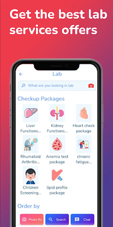 2- Order the required investigation tests (lab or Scan) after Doctor visits or your regular checkups, you can select from more than 1000 tests, including CBC, anemia, vitamins level, Kidney functions, liver functions, HbA1c, and more. You can book a test by searching by test name, send a prescription, or select from our featured packages. Compare prices between the labs and select the best price and your favorite lab from our network partners, including Royal lab, Speed Lab, LabmedEgyptt, Cairo scan, Al mokhaber, EL borg and more.