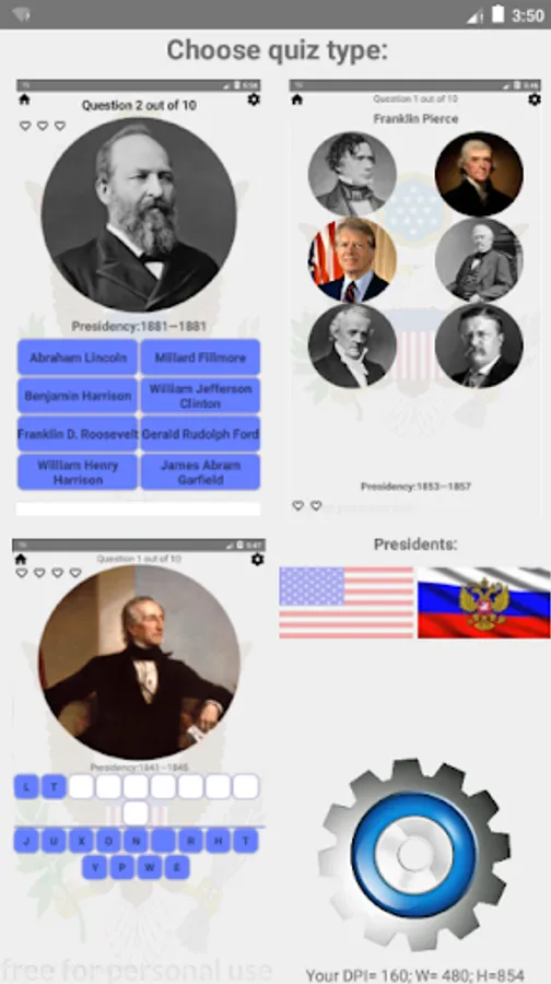 Settings will help complicate or simplify passable tests, it is possible to switch to the study of the dates of statesmen. The quiz is adapted for different screen resolutions.