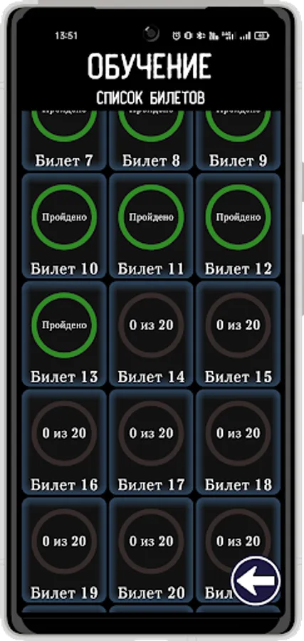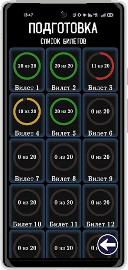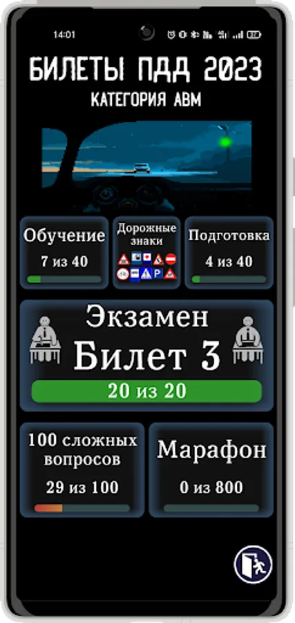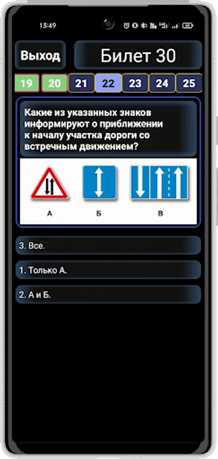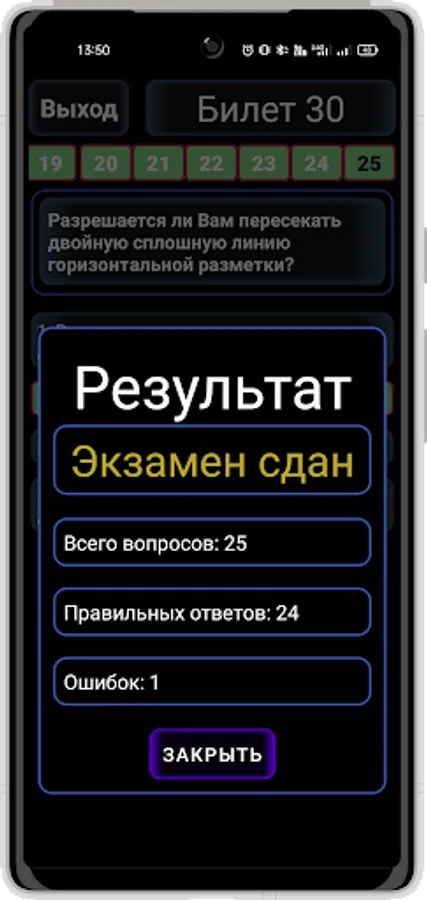 The application contains all 800 exam questions for passing the exam for the categories of rights "A", "B", "M", subcategories A1, B1.