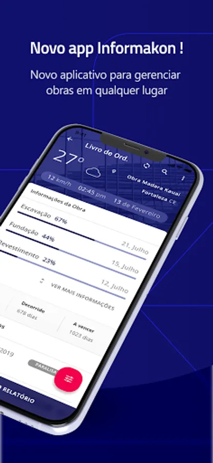 The Informakon Application is designed for civil construction companies, heavy construction, developers, urbanism, industrialized constructions, contractors, small and medium-sized construction companies, engineering offices and independent consultants, who want to better control their resources and have critical data in their palms. of hand.