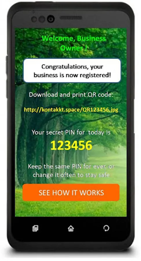 Secure Business Locations : Every business gets a secret PIN. To check if a visitor has signed in at the door, ask them to show the PIN on their phone. You can choose to retain your original business PIN, or change it every day