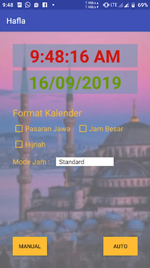 4. Displays the big clock, Arabic clock, hijri calendar, Javanese market ... all can be turned on or off.