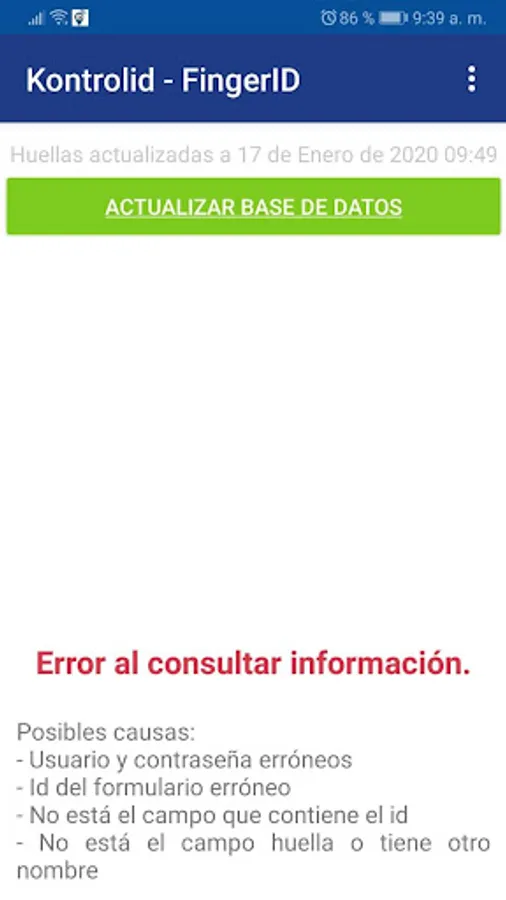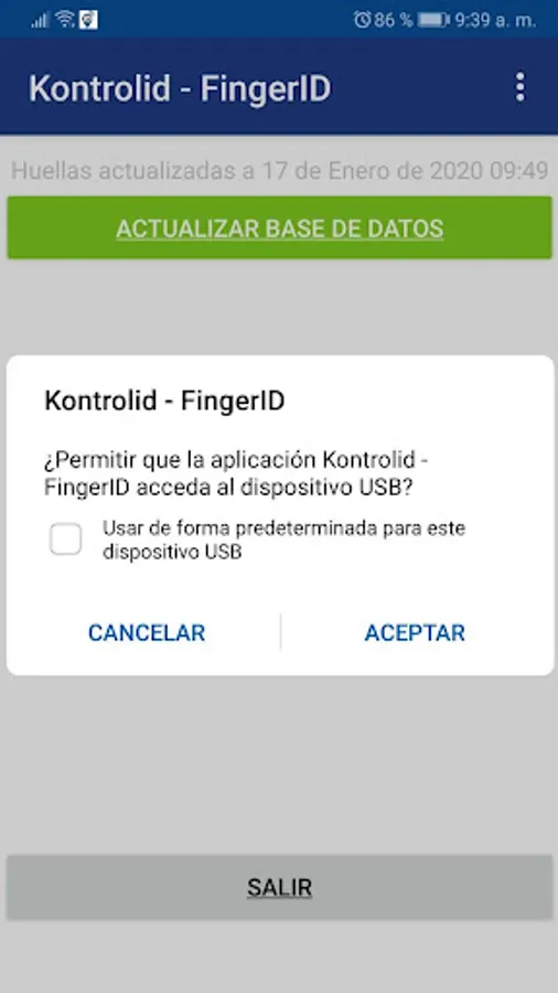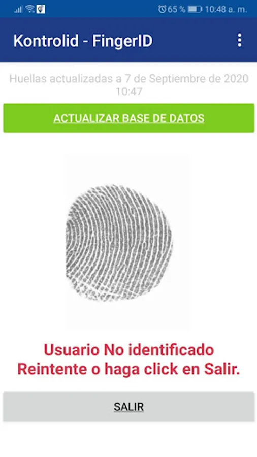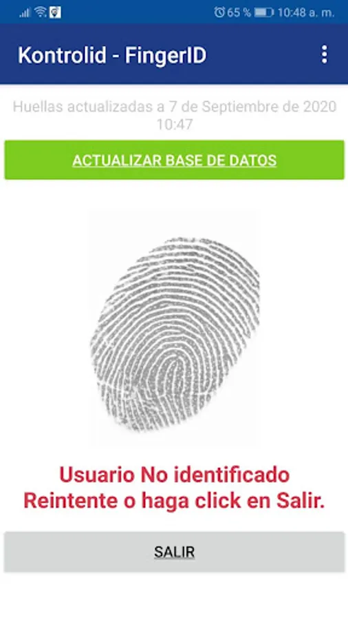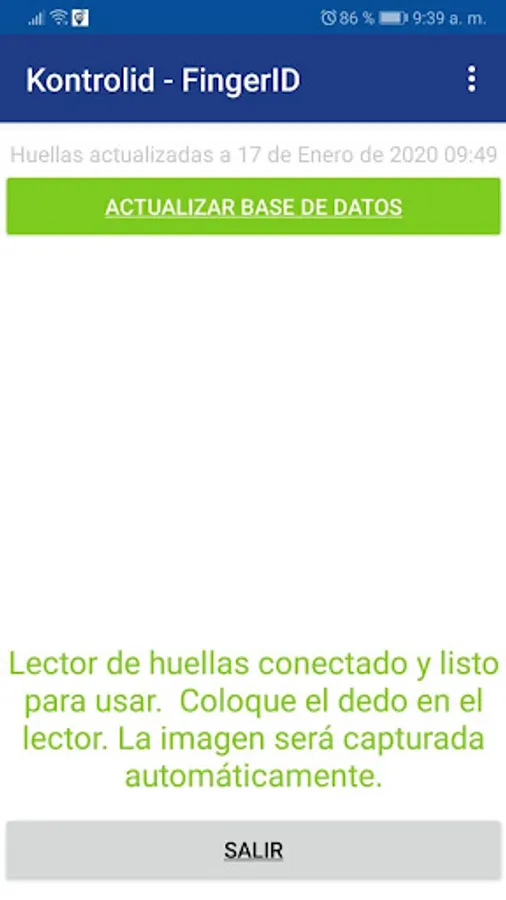 The KontroliD - FingerID application is responsible for capturing the fingerprint to be identified and comparing it against the fingerprint database. This database is stored locally by synchronizing with the data stored in Kontrolid.