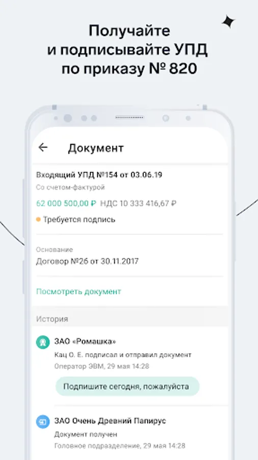 You can agree and refuse approval of documents. To do this, you only need an account in the Diadoc.