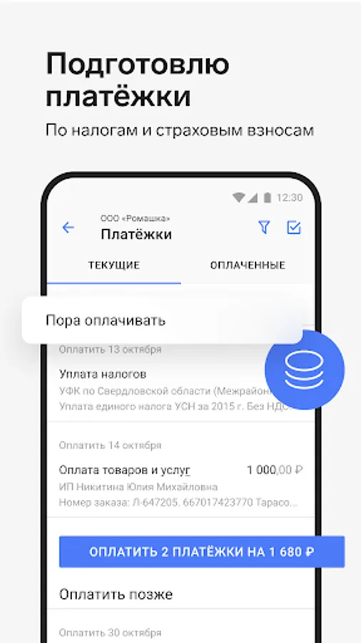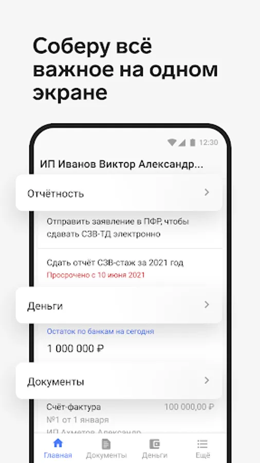 Elba is an online bookkeeping service for self-employed entrepreneurs. The application is synchronized with the web version, helps to quickly draw up transactions, pay fees and hand over SZV-M.