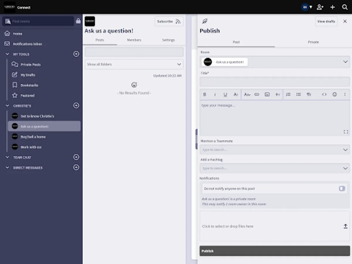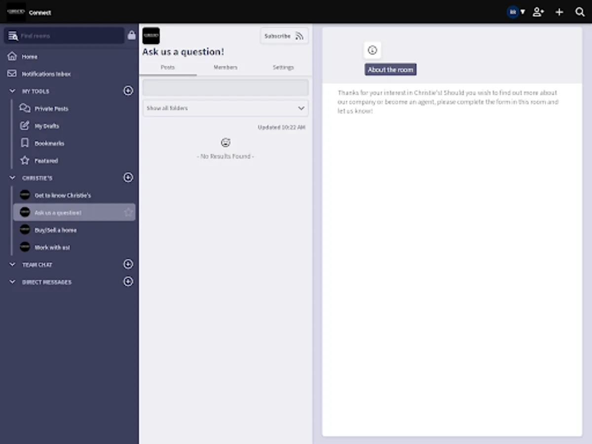 Christie's replaces internal emailing, shared drives, and intranets with a more intuitive, all-in-one communications app accessible via desktop and mobile. Users join a loop or room dedicated to a specific project or job function, start conversations, and create or consume valuable working knowledge. By creating more structure around messaging, Christie's simplifies best practice and information sharing, reduces redundant transactional messaging, and fosters a unique team culture that promotes productivity and teamwork.