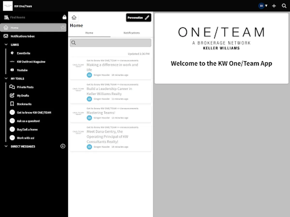 ONE/TEAM is the place for company name agents, partners, clients and prospective agents to connect and communicate with the KW ONE/TEAM brand through message board communications and keep up to date on the latest news and updates happening at KW ONE/TEAM.