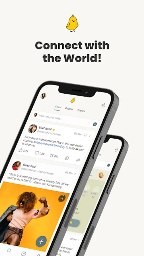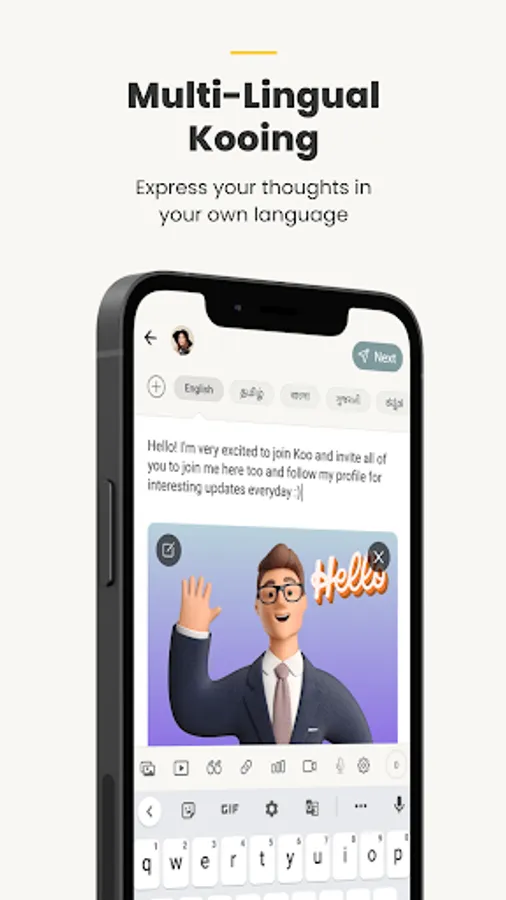 Koo is built for people to share their views in their mother tongue, connect with others in your language and have meaningful / respectful discussions. We hope you'll enjoy using this app as much as we enjoyed developing it!