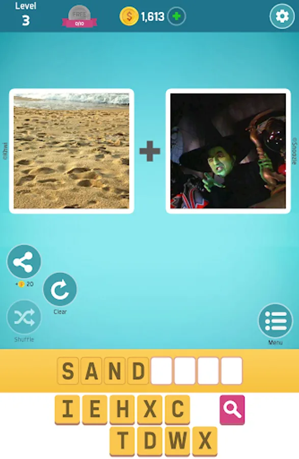 Create words- for example, you'll see pics of SAND and WITCH. Combine the two to solve for SANDWICH - a lunchtime favorite, When you're stumped, try saying the words out loud or ask a friend, Ready? 2 Pics, 1 Word - Can you guess what's the word?