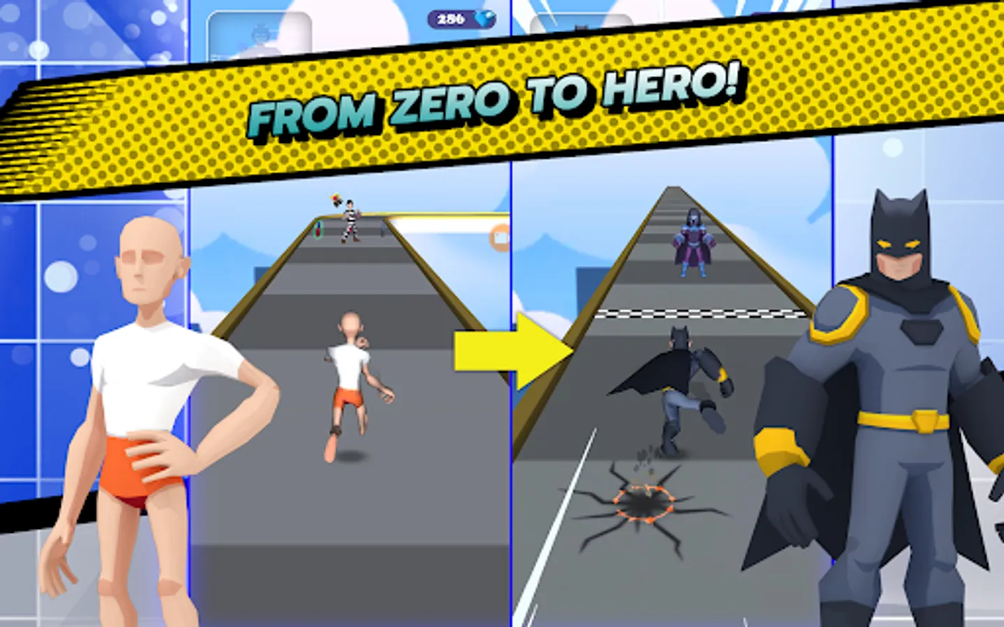 Be the hero! Unlock exciting and unique super heroes with unique super powers! Play as long as you can - the longer you go, the more heroes you unlock. Can you collect them all?