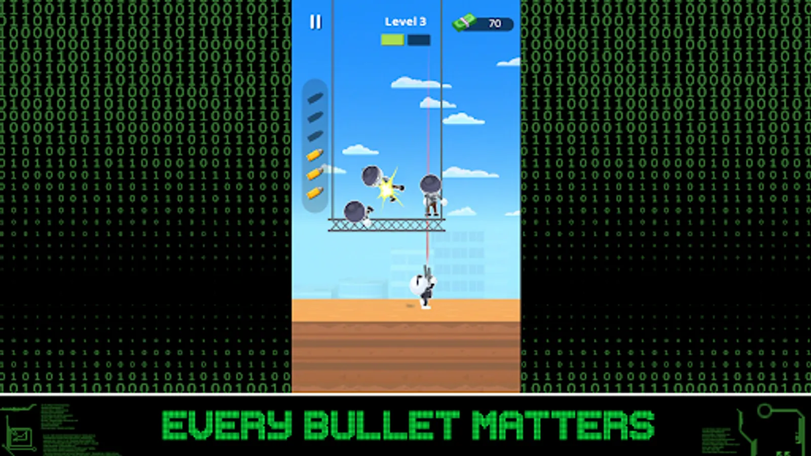 Super hot style, super cool moves. Take aim and shoot your shot in Gun Matrix, the addicting 3D shooter!