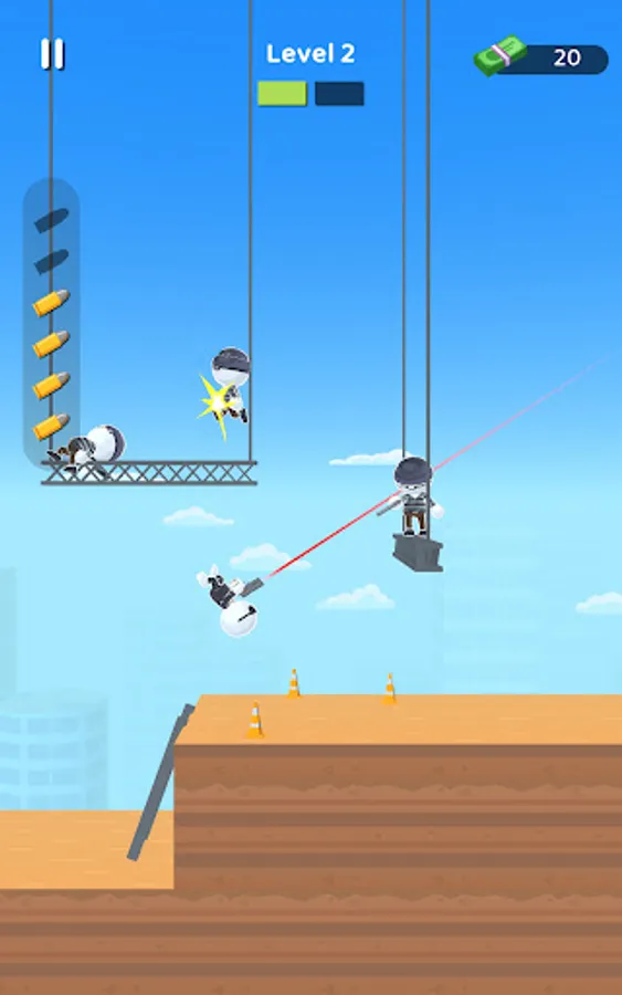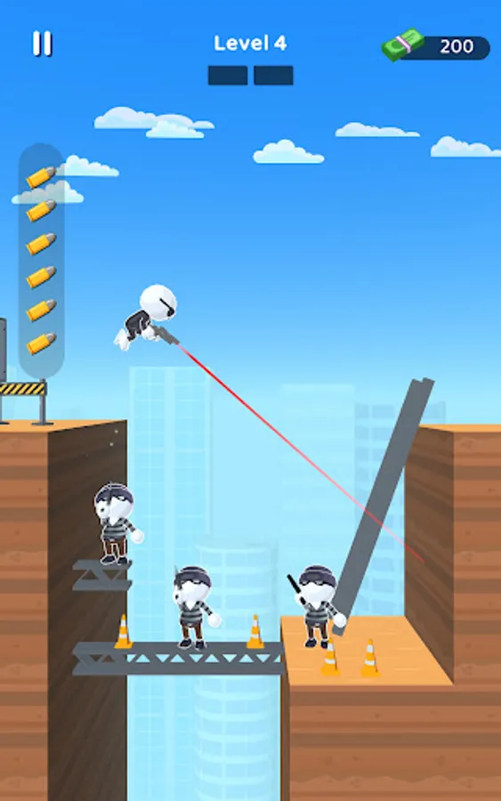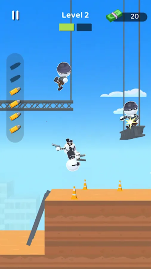 Run and gun in hyper-casual style in this addicting bullet time shooter game!