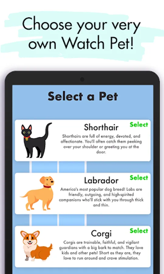 Watch Pet gives you the chance to meet and own various pets with unique personalities. Adopt a virtual pet and add some fun to your home screen with Watch Pet, a cute and addicting animal adoption game for the whole family!