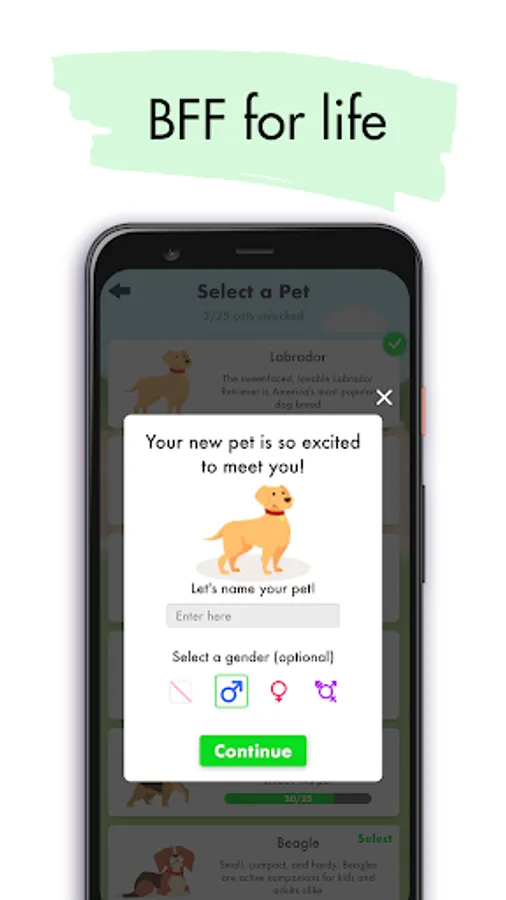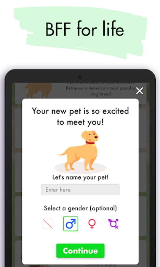 - Raise a pet: adopt and name your virtual pet