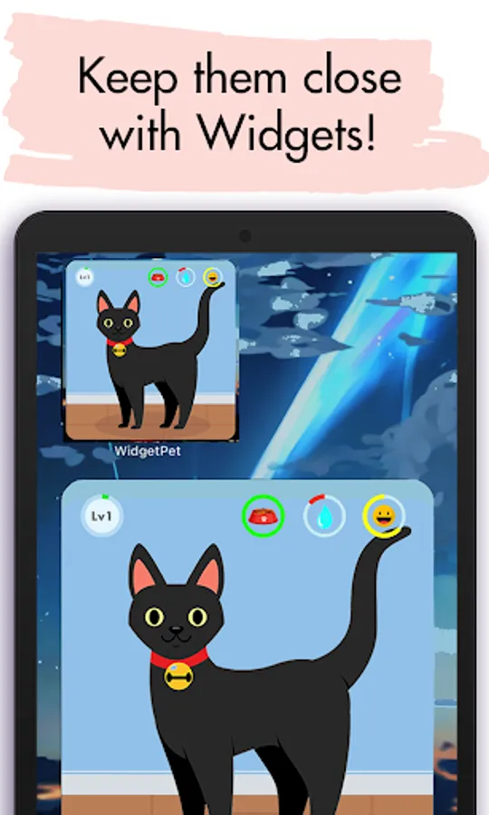 - Pet as a Widget: Add your pet as a widget on your home screen and have a fun widget game