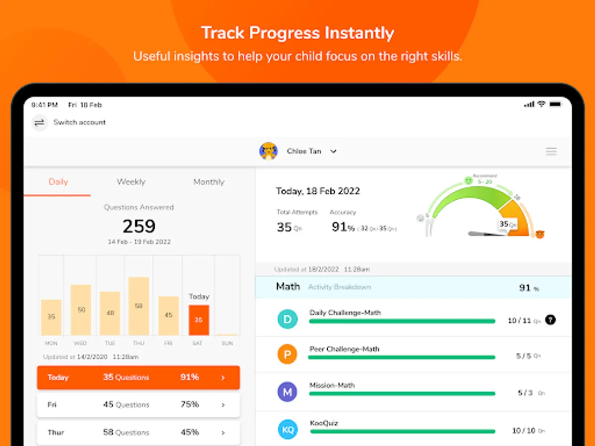If you want to know how well your child fares in maths, then KooBits Parent App is perfect for you.