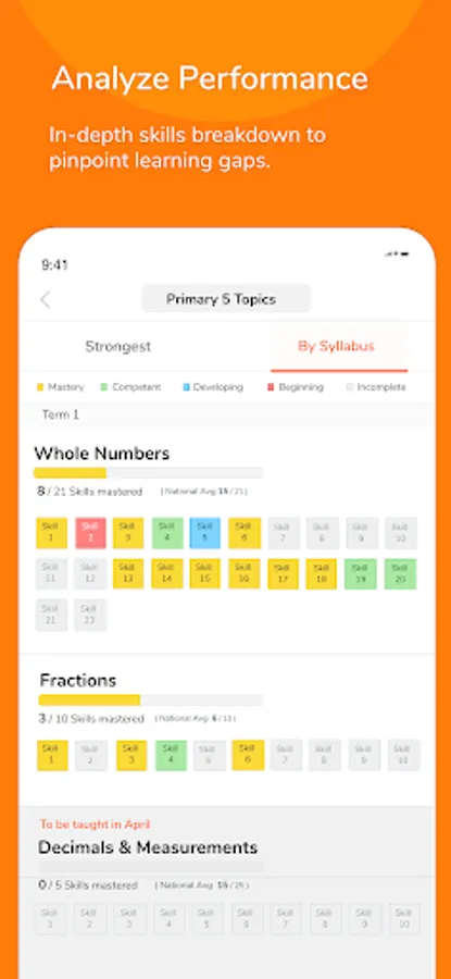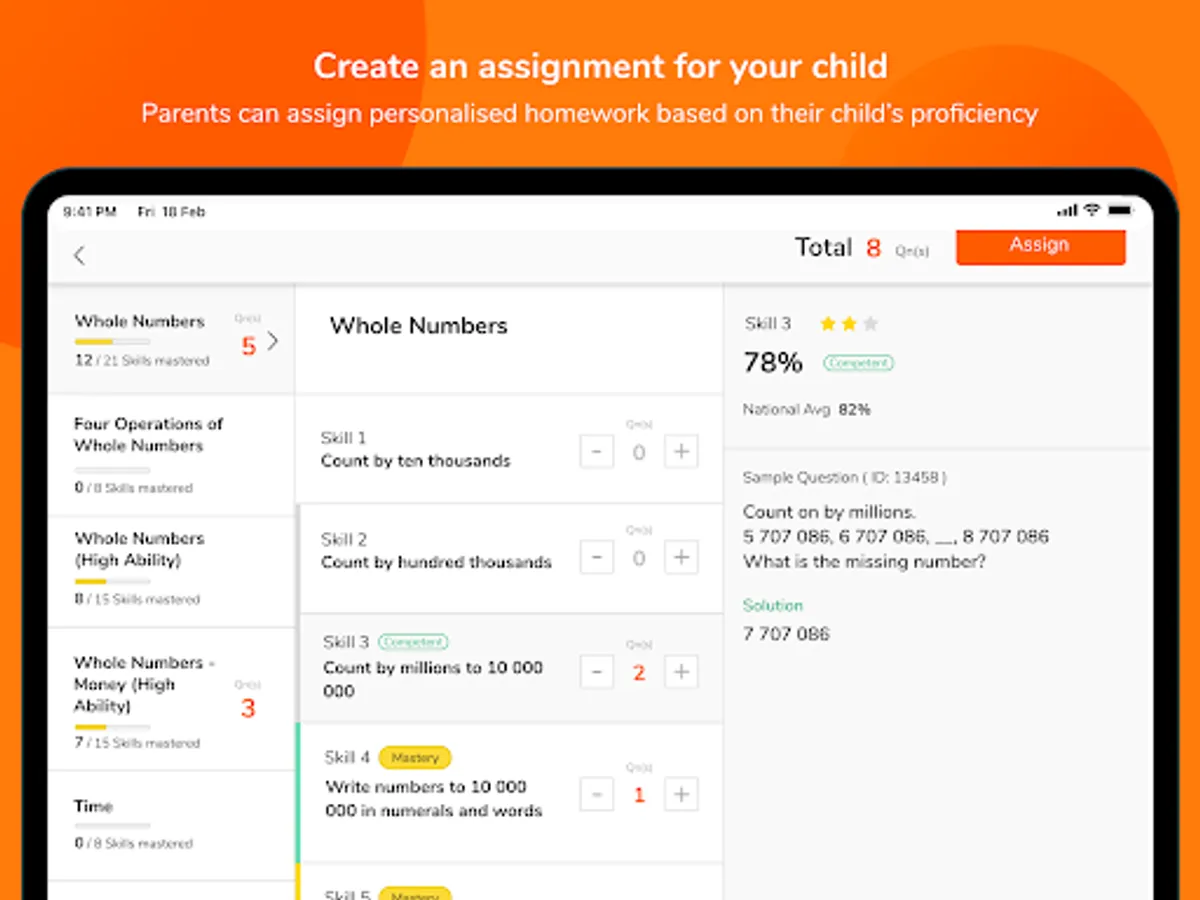 The app gives you a bird’s eye view of your child’s overall progress. It also allows you to zoom into the details, so you know exactly which skill to put more attention on.