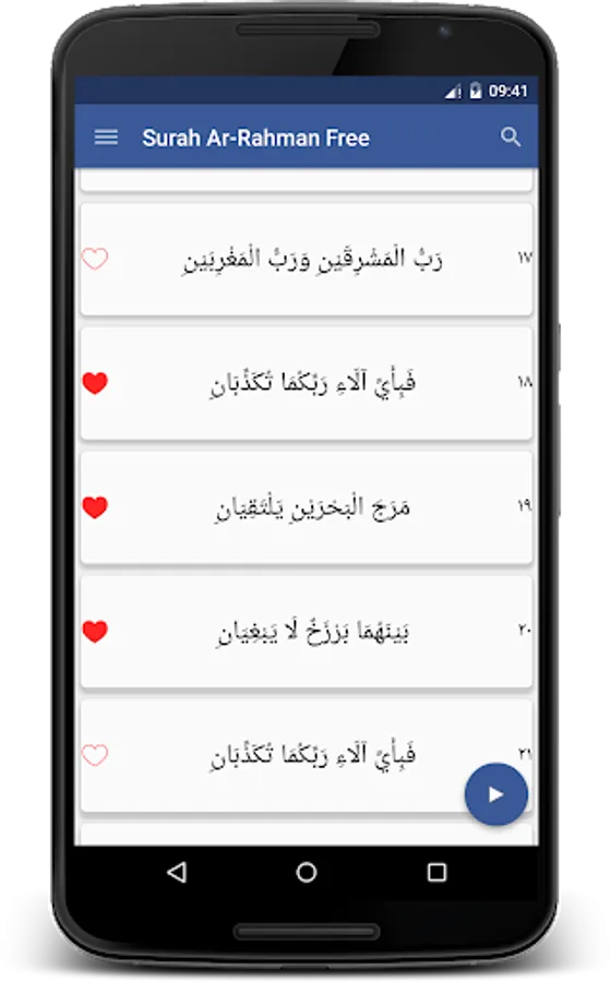What makes this app stand is that fact that this is the most innovative and comprehensive application available on the play store for Surah Ar-Rahman. One of the outstanding features is that this app recites each and every verse's Arabic audio first and then recites the translation for that verse. The verse that is being played is shown to you. One verse with its translation in Urdu or English is shown per page. After recitation of one verse, the next page is shown automatically. The app is always synchronized with the audio. Even if it encounters an error while playback, it auto-corrects it.
