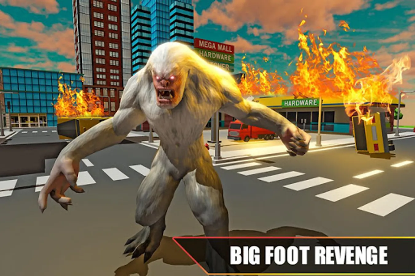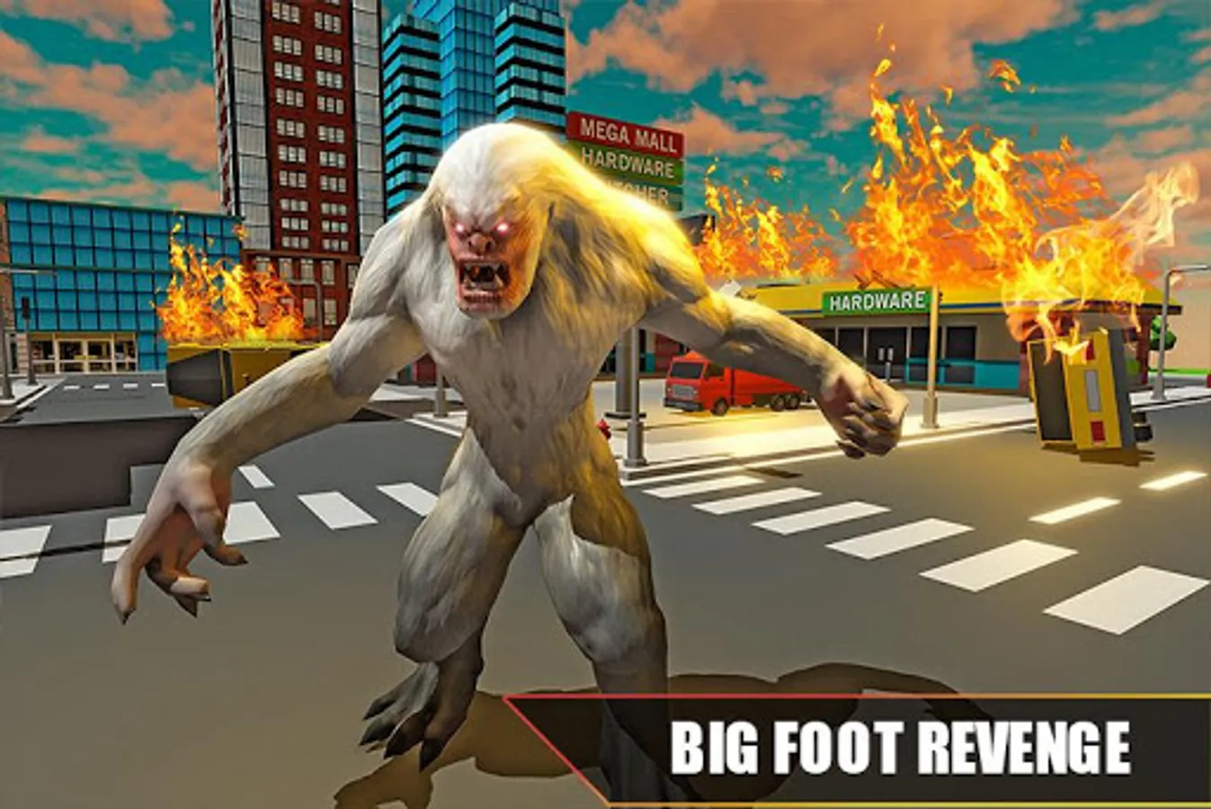 • Bigfoot monster city rampage hunter to demolish city.