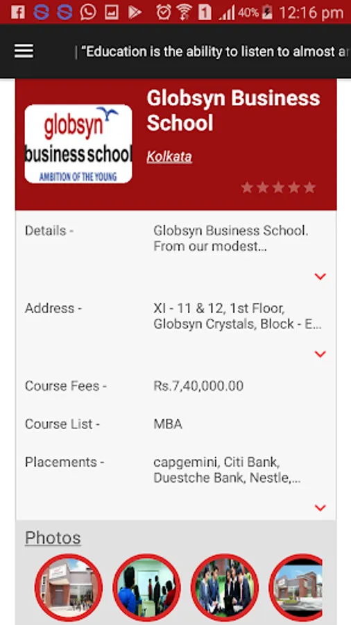 We can say it’s a great revolutionary move towards education field and we believe the students' mind has extremely large and huge capacity and this app will enable him or her keep their knowledge at their finger tips regarding Colleges, Institutions and Universities They can use all their knowledge at their will. So, we welcome you all to download and experience a leader like us which will drop you to the land of education horizon.