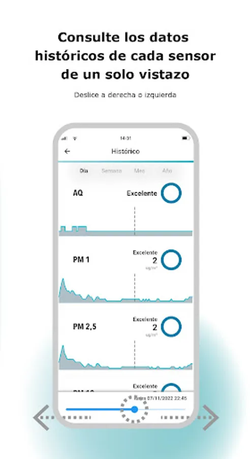 Intuitive app with graphics, see the historical data of each sensor at a glance. The application has been designed to show the status of the installation and record any changes that may have occurred. Use the filters and find what you are looking for faster, filter by: Plant / Room / Machine / AQ Index.