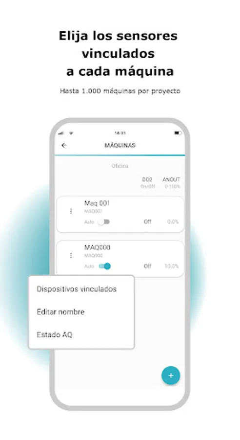- Choose the sensors linked to each machine, up to 1000 machines per project.