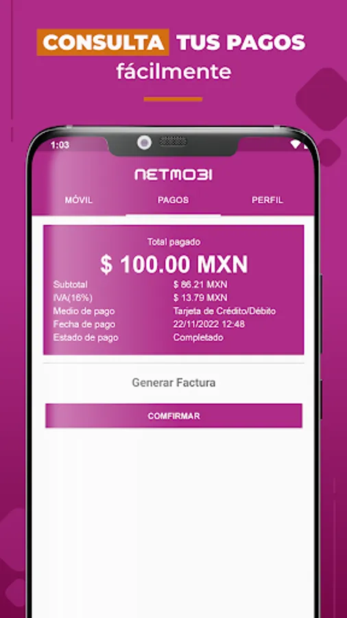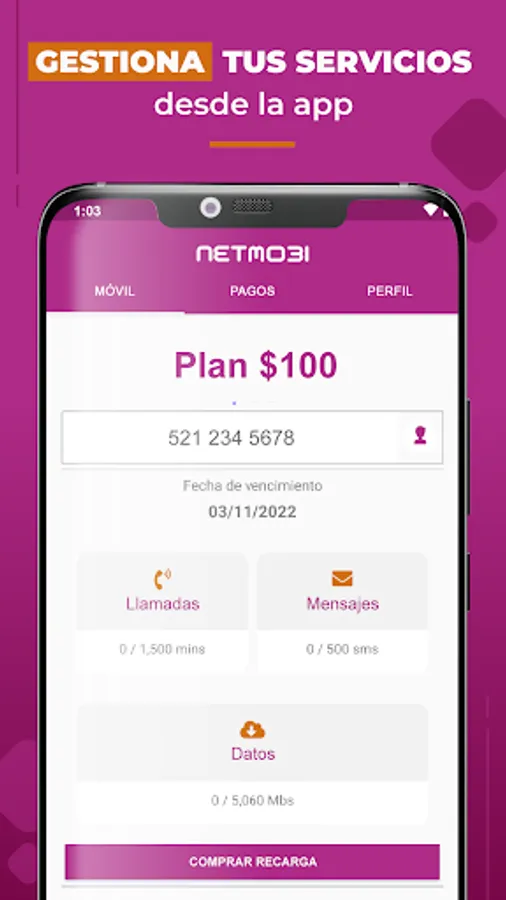 The "My Netmobi" App is the easiest option to manage your account, make payments or recharges and contract additional services without having to contact our service center or go to an authorized distributor.