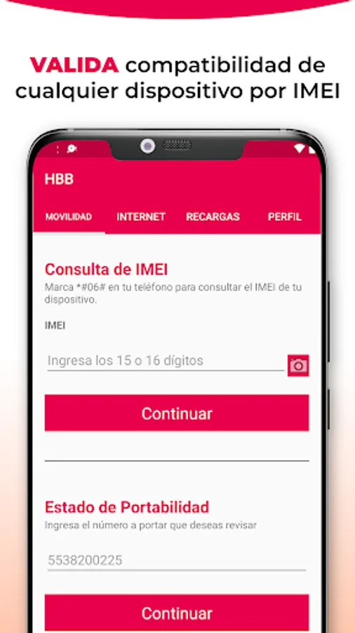 For MBB, validate the compatibility of any device through a 15 or 16 digit IMEI.
