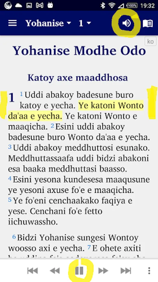 This application presents the New Testament translated into the Koorete language spoken in southern Ethiopia.