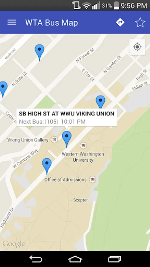 Wondering when that next bus is going to arrive, but still 10 minutes away from the actual stop? Western Wheels will help you find your bus stop, and see all the information you'd like to know! View when the next bus will arrive, or view all arrival times for any given day of the week.