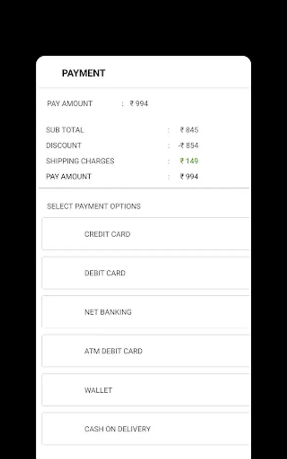 Choose between cash on delivery or credit/debit card payment methods.