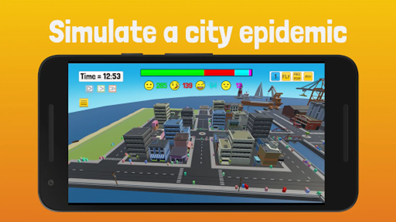 Epidemic Simulator is a 3D simulation that shows the spread of disease through person to person transmission. You control aspects of the infection and watch how they affect the final outcome of the population as the people go through stages of being Healthy, Sick and Recovered or Deceased.