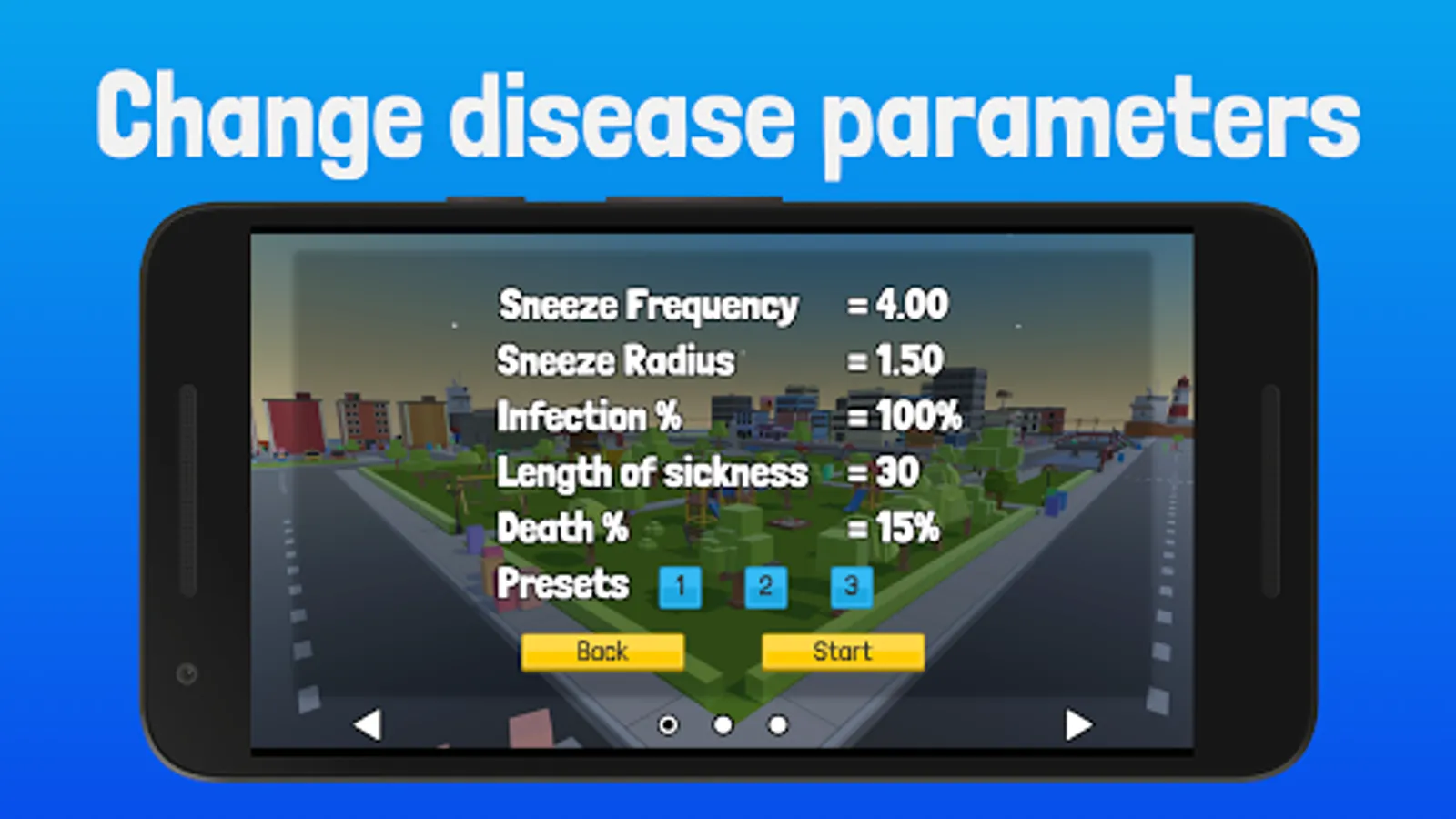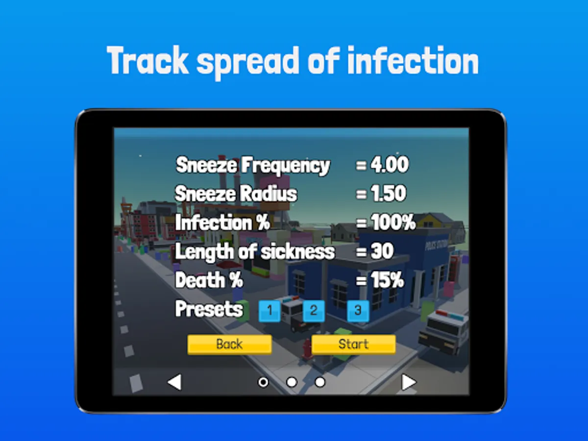 -A cleverly designed map with low footprint areas such as residential zones, as well as a busy shopping district where high densities of people make an excellent breeding ground for pathogens.